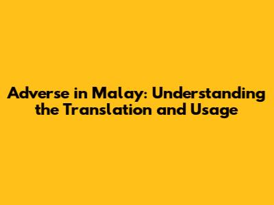 Adverse In Malay: Understanding The Translation And Usage