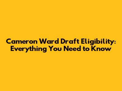 Cameron Ward Draft Eligibility: Everything You Need To Know