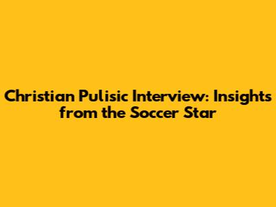 Christian Pulisic Interview: Insights From The Soccer Star