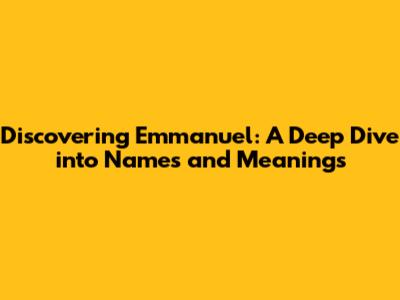 Discovering Emmanuel: A Deep Dive Into Names And Meanings