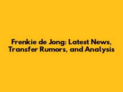 Frenkie De Jong: Latest News, Transfer Rumors, And Analysis