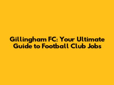 Exploring the Diverse World of Gillingham FC Job Opportunities