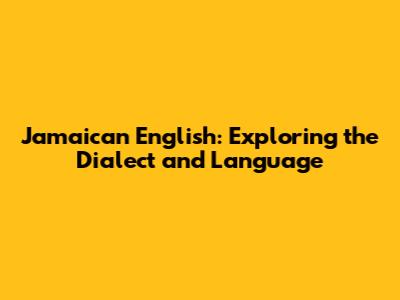 Jamaican English: Exploring The Dialect And Language