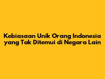 Kebiasaan Unik Orang Indonesia Yang Tak Ditemui Di Negara Lain