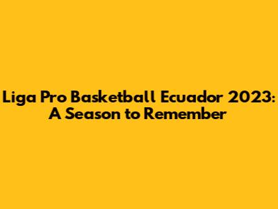 Liga Pro Basketball Ecuador 2023: Season Review & Highlights