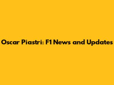 Oscar Piastri: F1 News And Updates
