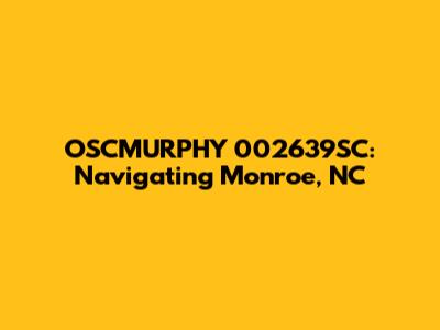 Hey guys! Let's dive into everything you need to know about OSCMURPHY 002639SC in Monroe, NC. This might seem like a random string of numbers and letters, but it can unlock a wealth of information. Whether you're new to the area, looking to relocate, or just curious about what's happening around town, understanding this code can be super helpful. So, grab a coffee, sit back, and let's explore what OSCMURPHY 002639SC means and how it can help you navigate the vibrant community of Monroe.