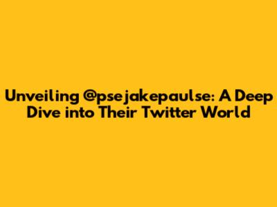 Hey everyone! Let's dive deep into the world of @psejakepaulse on Twitter, shall we? This isn't just a casual scroll; we're going to explore their online presence, what makes them tick, and maybe even uncover some hidden gems. Get ready for a fascinating journey! First of all, it's very important to note that without the use of the Twitter account directly, it is hard to accurately determine the information. It is important to highlight what is available to the public. Let's see what we can find, and maybe have some fun along the way!